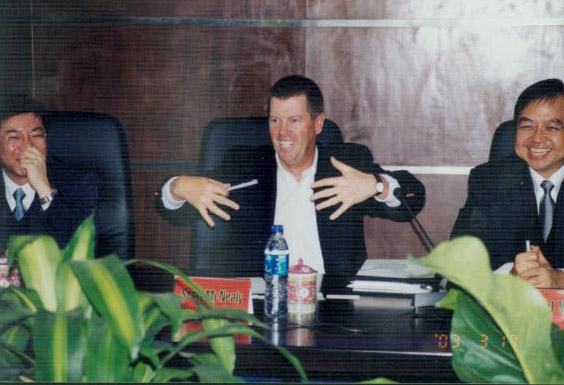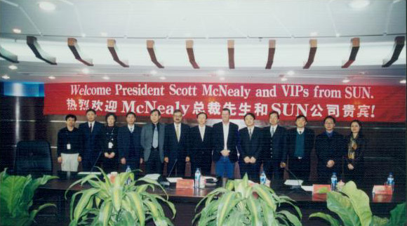 3月16日深夜,Sun公司董事长、全球总裁兼CEO 司各特.麦克尼利(ScottMcNealy)抵达北京,开始了他备受瞩目的第三次中国之行。 而在此次安排紧筹的日程里,与赛尔网络高层的会谈是麦克尼利先生第一天的重要内容。 17日上午9:30,麦克尼利先生来到赛尔网络东方广场办公区,与公司高层进行座谈,受到热烈欢迎。