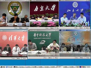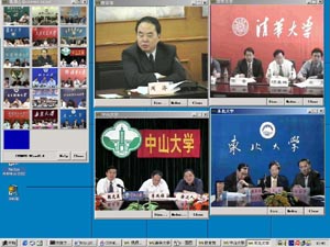 “全国教育应急视频会议系统”是在教育部支持下,为抗击“非典”疫情,依托中国教育和科研计算机网CERNET于4月下旬紧急启动的。该系统在全国各高校的配合下,依托CERNET遍布全国的高速互联网络,利用下一代互联网典型应用技术——组播视频技术而搭建的具有超强交互功能的视频会议系统。此前已经在教育系统进行过多次小规模试用,极大地方便了教育部与各级教育机构及各大学之间的信息交流与沟通,为教育系统阻击非典提供了先进、实用、低廉信息交流平台。在整个会议期间,图像清晰稳定,操作简便,获得了与会校长及领导的肯定。