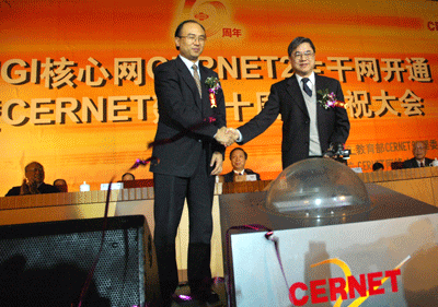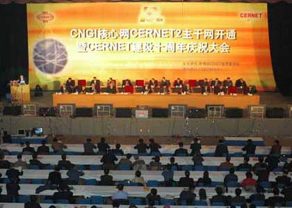 近日,作为CNGI核心网CERNET2主干网开通暨CERNET建设十周年庆祝盛典的主要活动,“中国下一代互联网示范工程CNGI核心网CERNET2主干网开通暨CERNET建设十周年庆祝大会”在北京国际会议中心隆重举行,众多国家部委领导以及长期关心CERNET建设和发展的相关单位的领导和专家均出席并致贺。此外,共有来自各省、市教育主管部门和全国高校主管领导、专家和网络中心代表,以及多年来帮助和关心CERNET发展的国际友人、重要互联网国际组织和团体的代表约1500余人参加了此次盛会。会上,国家发改委、科技部、信息产业部、国务院信息化工作办公室、教育部、中国科学院、中国工程院、国家自然基金会等八部委联合宣布,中国第一个下一代互联网暨中国下一代互联网示范工程核心网(CERNET2)正式开通,这是世界上规模最大的纯Ipv6(互联网协议第6版)互联网,标志着我国下一代互联网建设全面拉开序幕,并在世界下一代互联网发展上取得先机。