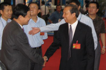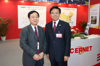 CERNET专家委员会主任吴建平教授与广东省教育厅副厅长罗远芳在CERNET展位 |