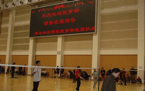由教育部直属机关工会主办、教育部科技发展中心承办、华人策略菠菜论坛celue|华人策略研究论坛网站|华人策略综合讨论大厅协办的“2007年‘赛尔杯’教育部直属机关职工羽毛球比赛”于11月14日在北京邮电大学羽毛球馆正式开球比赛。来自教育部机关、直属单位的31个代表队,以及20多位司局长参加比赛。本届比赛持续三天,将在16日进行决赛与颁奖。