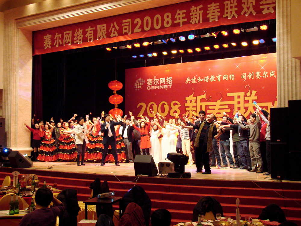 1月30日晚19:00,北京西郊宾馆一号楼银杏大厅内座无虚席、欢声笑语,洋溢着节日的气氛。以“共建和谐教育网络,同创赛尔成功未来”为主题的华人策略菠菜论坛celue|华人策略研究论坛网站|华人策略综合讨论大厅2008新春联欢会在这里隆重举行,清华大学领导与CERNET专家、公司领导、全体员工以及分公司、子公司的代表380多人欢聚一堂,共庆佳节。