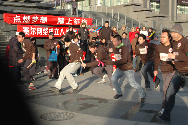 为了热烈庆祝赛尔网络成立八周年,12月29日,公司于清华科技园举行“点燃梦想 踏上征途”长跑接力活动。公司领导与在京员工热情参与,8支代表队的运动员充分弘扬赛尔网络团结、拼搏、坚持的精神,在接力长跑活动中奋勇争先,展示了赛尔网络团结一致、永不言弃的精神风貌。