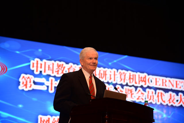 教育部科技司司长王延觉在致辞中表示,CERNET作为我国教育信息化和国家信息化的重要基础设施,同样面临转型发展的挑战,如何从跟踪模仿到创新发展和引领发展,如何在即将开始的"十三五"乃至今后的十年、二十年,为中国的互联网发展和信息化进程作出更大的贡献,是全体CERNET成员必须认真思考的重大问题。借此机会,他对CERNET提出了三点希望:一是不断提升CERNET的网络质量与服务水平,积极支持各类教学和管理应用,为"十三五"期间全面推动教育信息化工作,为构建网络化、数字化、个性化、终身化的教育体系,提供更先进、更安全的网络环境;二是联合CERNET各节点高校,承担国家未来网络重大科技基础设施和网络空间安全重大科技项目,继续推动下一代互联网的发展和技术创新,保持在国际国内的技术领先优势,争取为国家做出更大贡献;三是吸引更多年轻人参与互联网技术研究,鼓励开发创新型应用,培养更多国家需要的网络信息安全和网络技术创新人才。