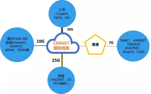 CERNET与全球主要学术网包括Internet2、GéANT、APAN实现高速直联,并保持着长久且全面的合作关系,在互联网技术和应用领域开展学术交流活动和项目合作,集合了全世界主要大学和著名国际学术组织的信息资源镜像系统,可满足中外高校间的教学与科研等多方面需求。
