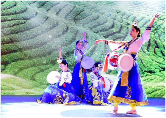 同时把观众带入第二篇章"乘势而上";国际贸易部的《保卫黄河》小合唱,诙谐幽默、让大家忍俊不禁。由行政管理部、信息服务部等多个部门共同参与,带来的水墨舞《墨舞春秋》气势恢弘、扣人心弦。在第三篇章,总经理办公室带来的独具特色的朝鲜族舞蹈《阿里郎》,一出场就惊艳全场,靓丽的服饰、惊叹的舞鼓、美妙的舞姿,这完全就是一场视觉听觉盛宴啊!