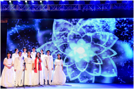 晚会节目精彩纷呈,晚会现场气氛热烈。期间更是穿插了激动人心的抽奖环节,欢呼声响彻整个大厅,最后,晚会在领导和全体演职人员共同合唱的歌曲《歌唱祖国》下,落下帷幕。