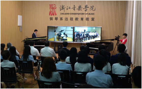 据介绍,这套钢琴远程教学系统由浙江省省长基金资助,浙江音乐学院与日本雅马哈株式会社合作开发,在传统远程教学技术基础上,通过应用最先进的传感技术和控制技术,将钢琴家在一台钢琴上的演绎,以同步无人演奏的方式,在全世界任何地点的另一台钢琴上精确、完美再现。该系统打破了地域、时间和空间的限制,使系统两端远隔万里的师生近在咫尺、身如其境,将传统的一对一钢琴教学拓展为一对多、多对一、多对多,为全球音乐院校师生之间的相互交流、学习借鉴提供便利,使学院师生不出校门就可以接受世界顶尖艺术大家的精彩授课。