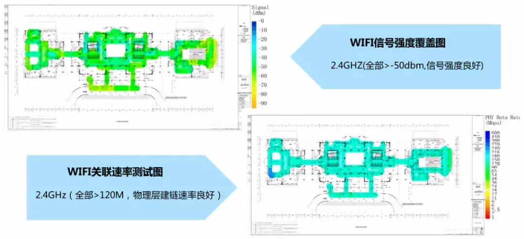 图4:一期建设后项目成果--复旦光华楼无线测试结果(2.4GHz,图为某层示例)