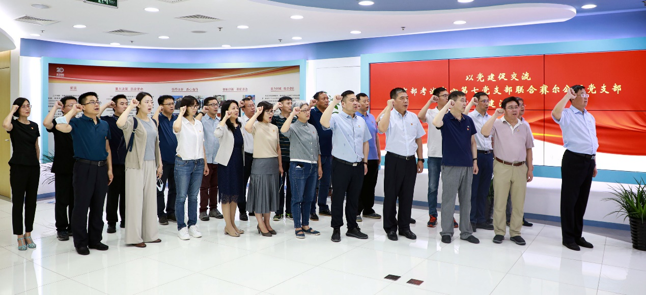 为庆祝中国共产党百年华诞,公司党支部与教育部考试中心第七党支部近期还联合开展了党建活动。党员们面对鲜红的党旗重温入党誓词,双方深入交流党建工作和学习心得。这是双方开展联合党建的第一次尝试,有力提升了党组织的凝聚力与战斗力,促进了双方在工作上的互动。