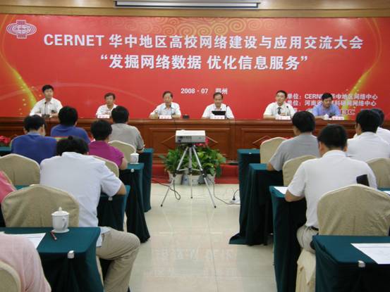 2008年7月31日至8月2日,主题为:“发掘网络数据、优化信息服务”的2008年CERNET华中地区高校网络建设与应用交流大会在河南郑州胜利召开,本次会议由CERNET华中地区网络中心主