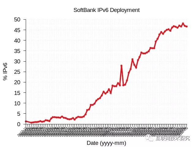 图7 Soft Bank IPv6部署曲线图 |