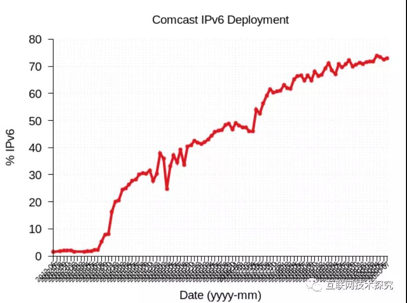 图9 ComCast IPv6部署曲线图 |