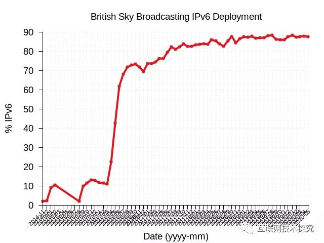 图14 British Sky Broadcasting IPv6部署曲线图 |