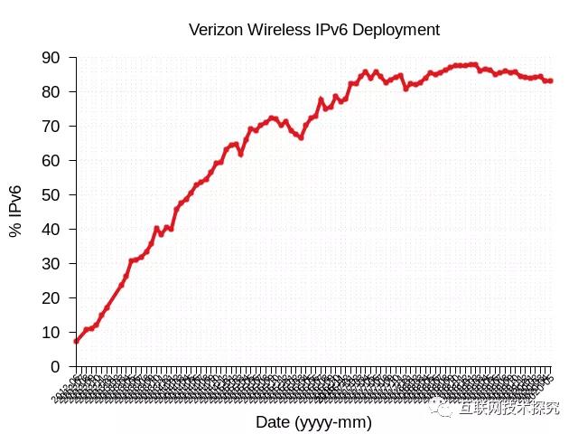 图1 Verizon Wireless IPv6部署曲线图 |