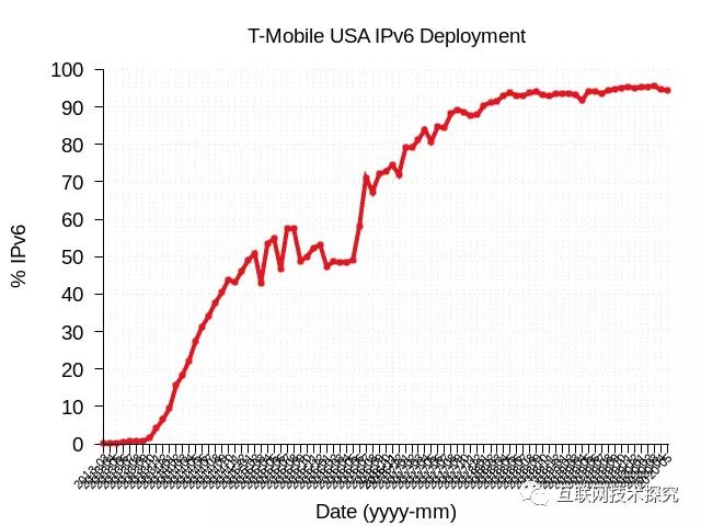 图2 T-Mobile USA IPv6部署曲线图 |