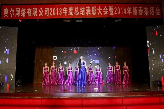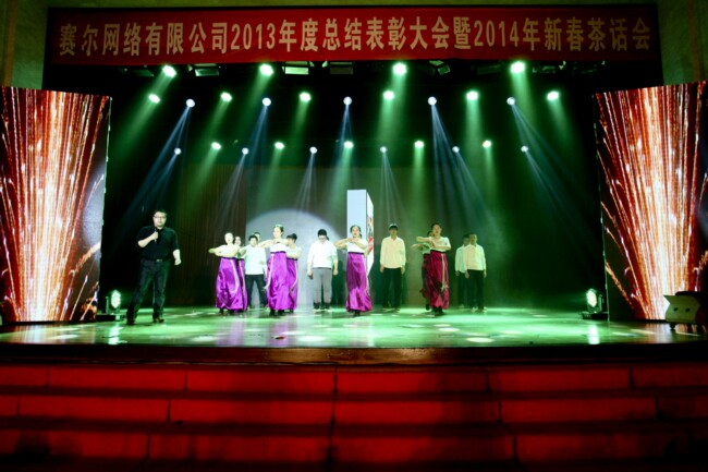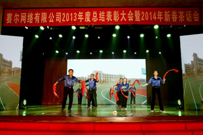 每年的新春年会是赛尔网络的一项传统文化活动,公司在这一天盘点去岁,布局来年,团聚联欢,提振士气,深受广大员工的喜爱。今年,公司出于举办文化活动要倡导节俭,注重内涵建设这一自我要求,采用了茶话会形式,全体员工载歌载舞辞旧迎新。形式虽简朴,但活动安排相比以往更加精心细致,并进行了多项创新。其中包括首次面向分公司进行全程同步现场直播,现场抽奖环节覆盖了公司全体正式在职员工等等,在体现公司对员工的人文关怀上做了更加完善的环节设计,节目形式的设置也更加多姿多彩,一些富于创意的节目给人留下深刻印象。